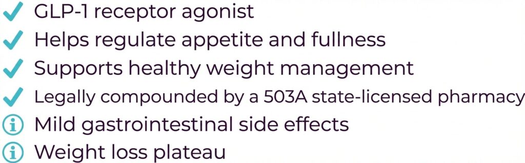 Semaglutide supports weight management and may contribute to overall metabolic wellness. Talk to your healthcare provider to see if semaglutide is appropriate for your individual health needs.